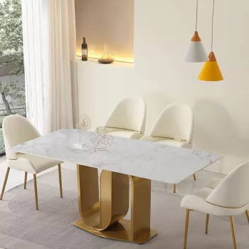 Gold-Finished Contemporary 71″ Dining Table with Sintered Stone Top